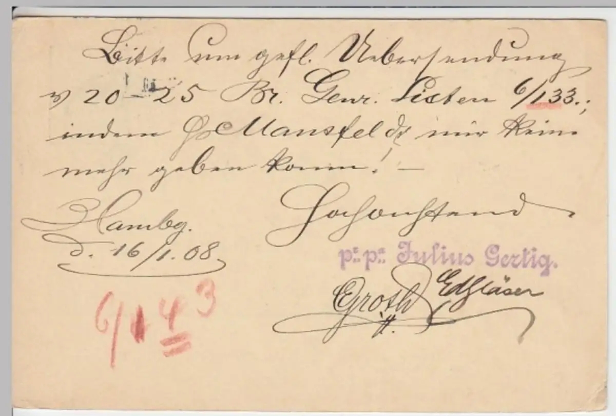 (18330) Ganzsache DR Hamburg 1908