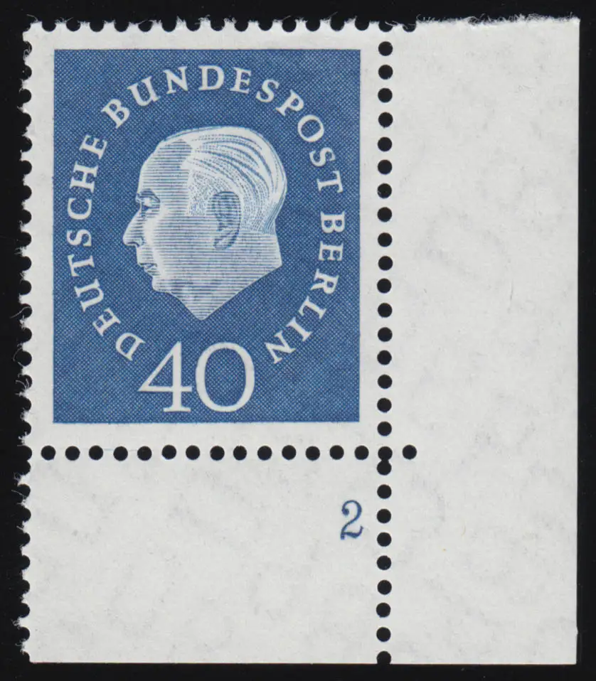 185 Heuss 40 Pf Ecke ur mit FN2 ** postfrisch