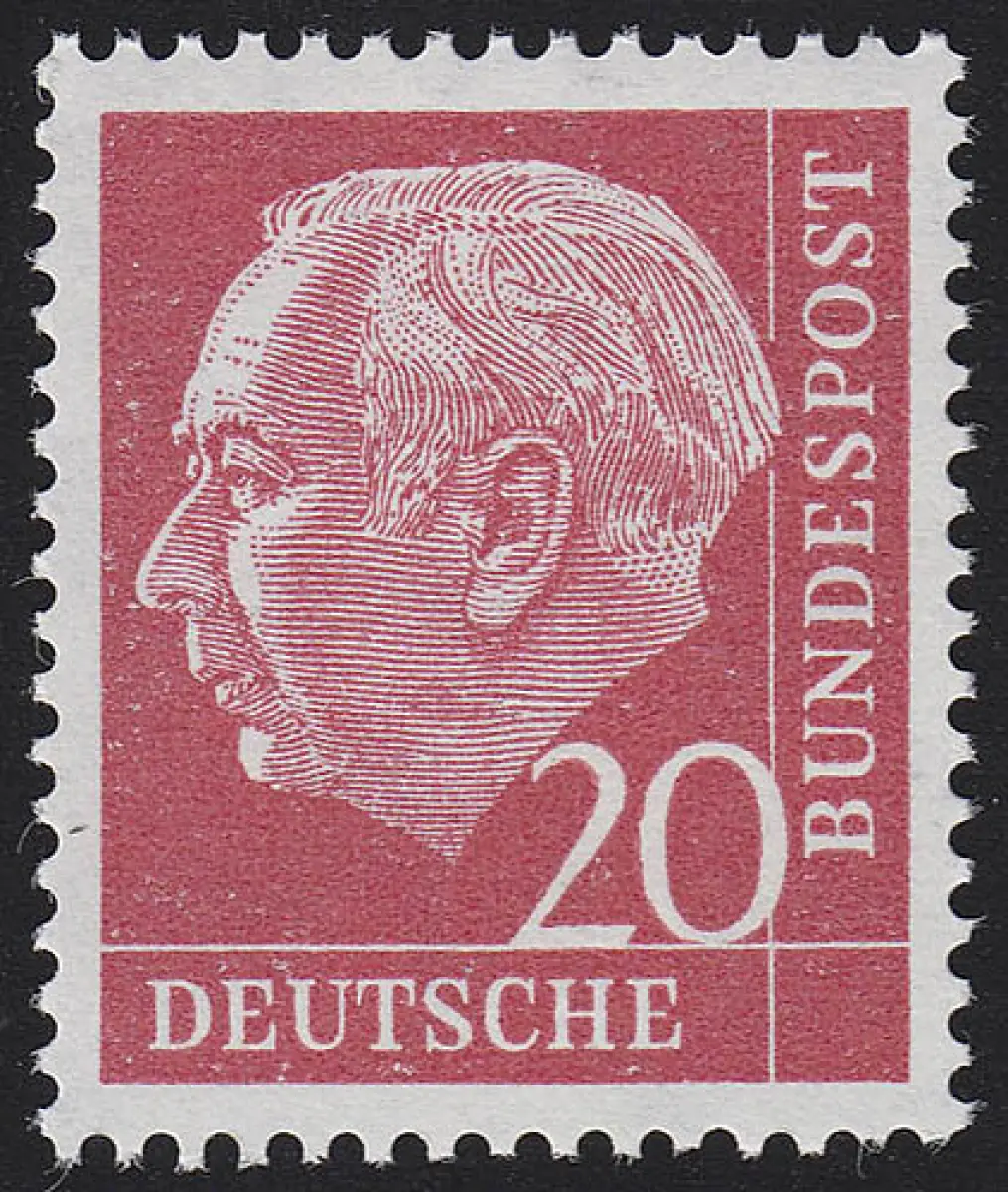185x YwII Heuss 20 Pf liegendes Wasserzeichen, Type II **