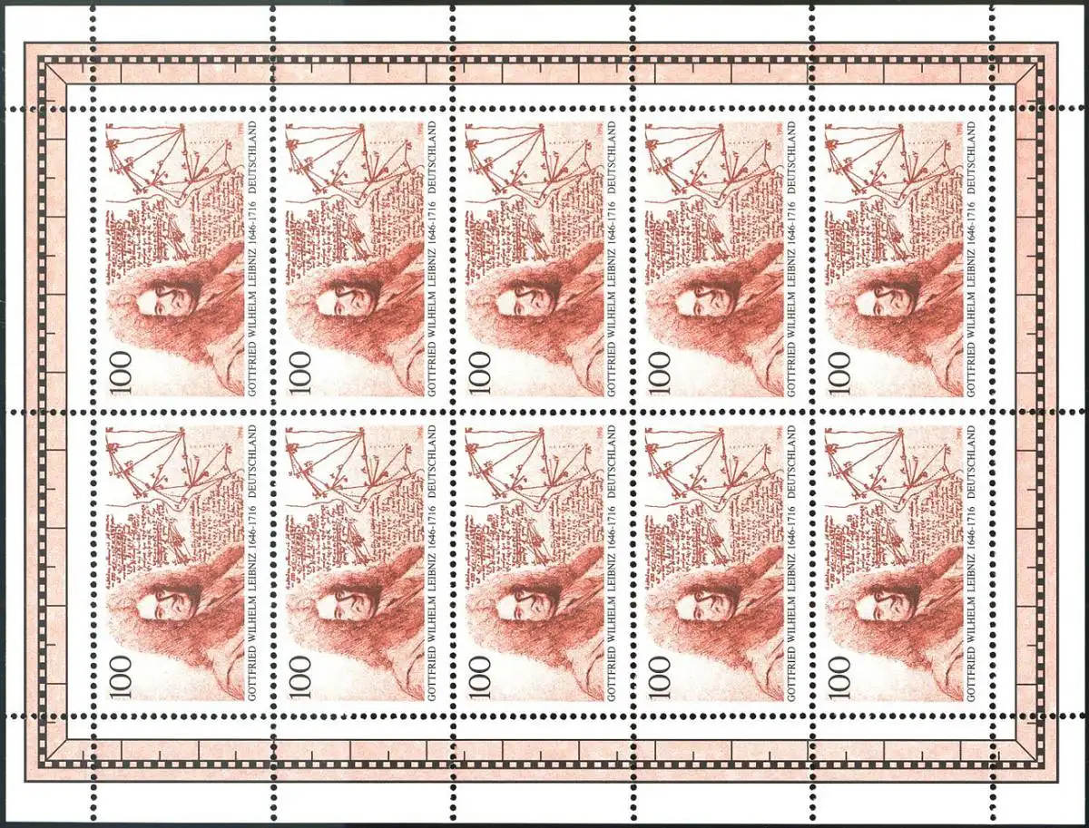 1865II Leibniz - 10er-Bogen mit PLF II, Feld 2, **