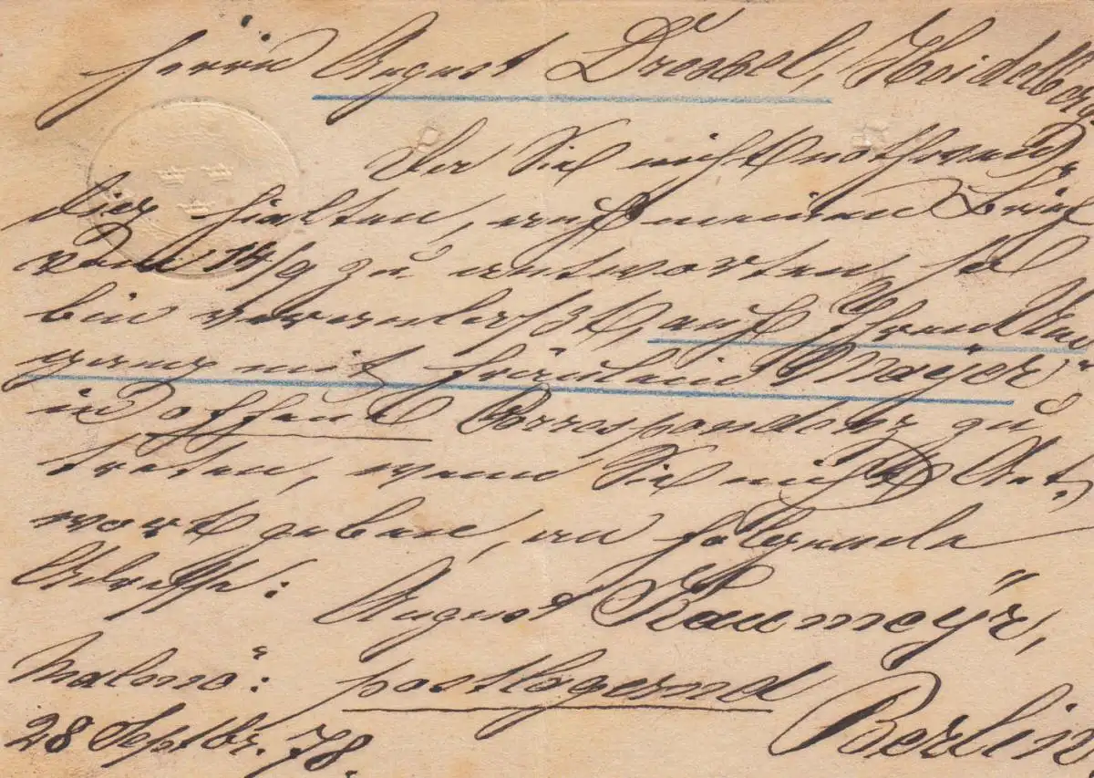 Teilweise wurden vom Scanner ca. 2mm vom Bildrand abgeschnitten. Der Beleg und Briefmarke (n) sind vollständig erhalten.