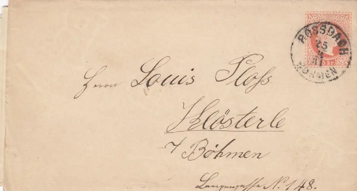 1881: Brief Rossbach/Böhmen nach Kösterle/Asch mit Briefinhalt