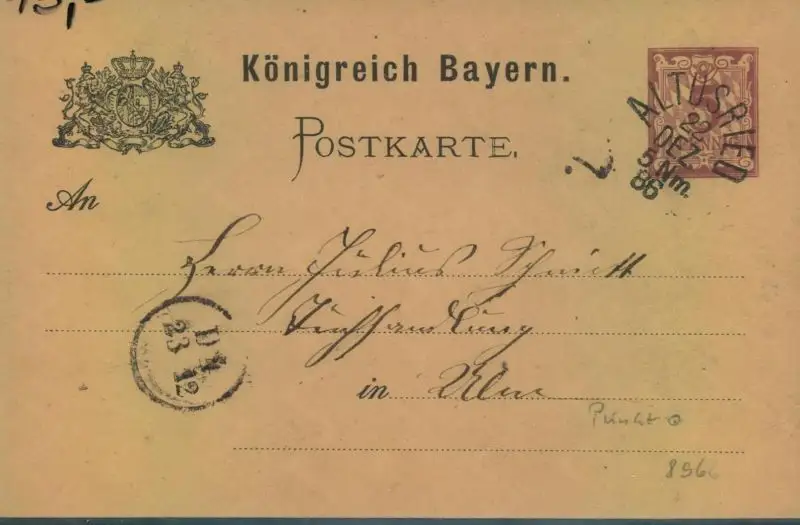 1886, BAYERN STEMPEL: ALTUSRIED, auf 5 Pfg. GSK