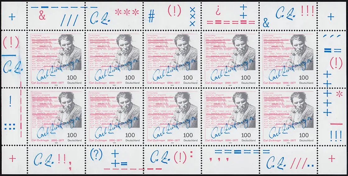 1893 Carl Zuckmayer - 10er-Bogen mit Verschmierung aller Druckfarben **