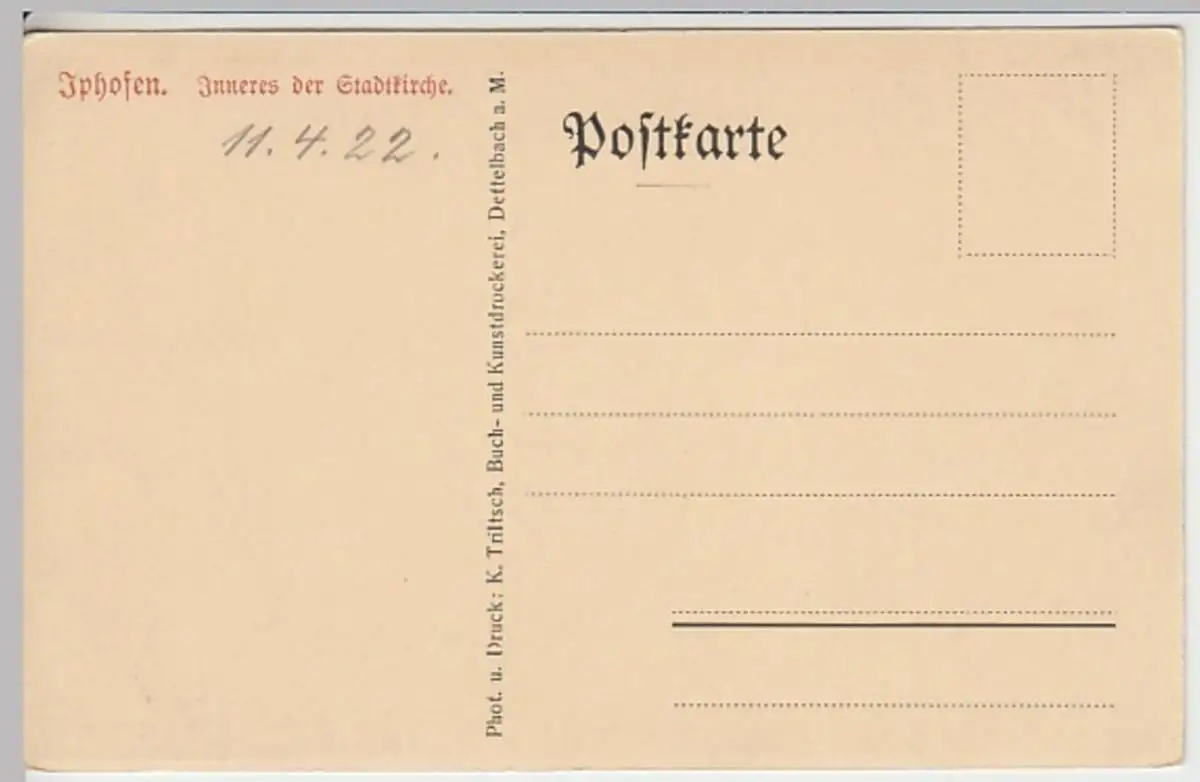 - (18942) Ansichtskarte, postcard, PPC - Iphofen, Stadtkirche, Inneres 1922