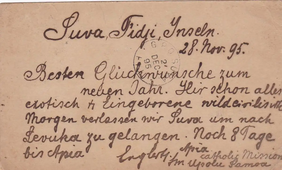 1895: Fiji: post card to Rippberg