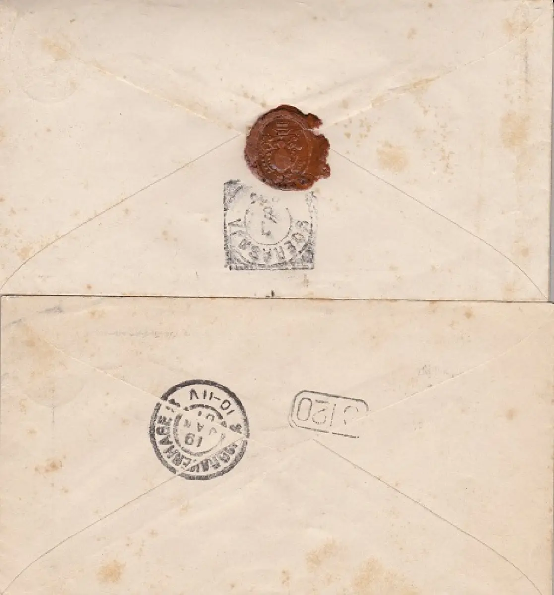 1900 wurde eine Reihe von Umschlägen mit dem Neuwert 10 überdruckt.