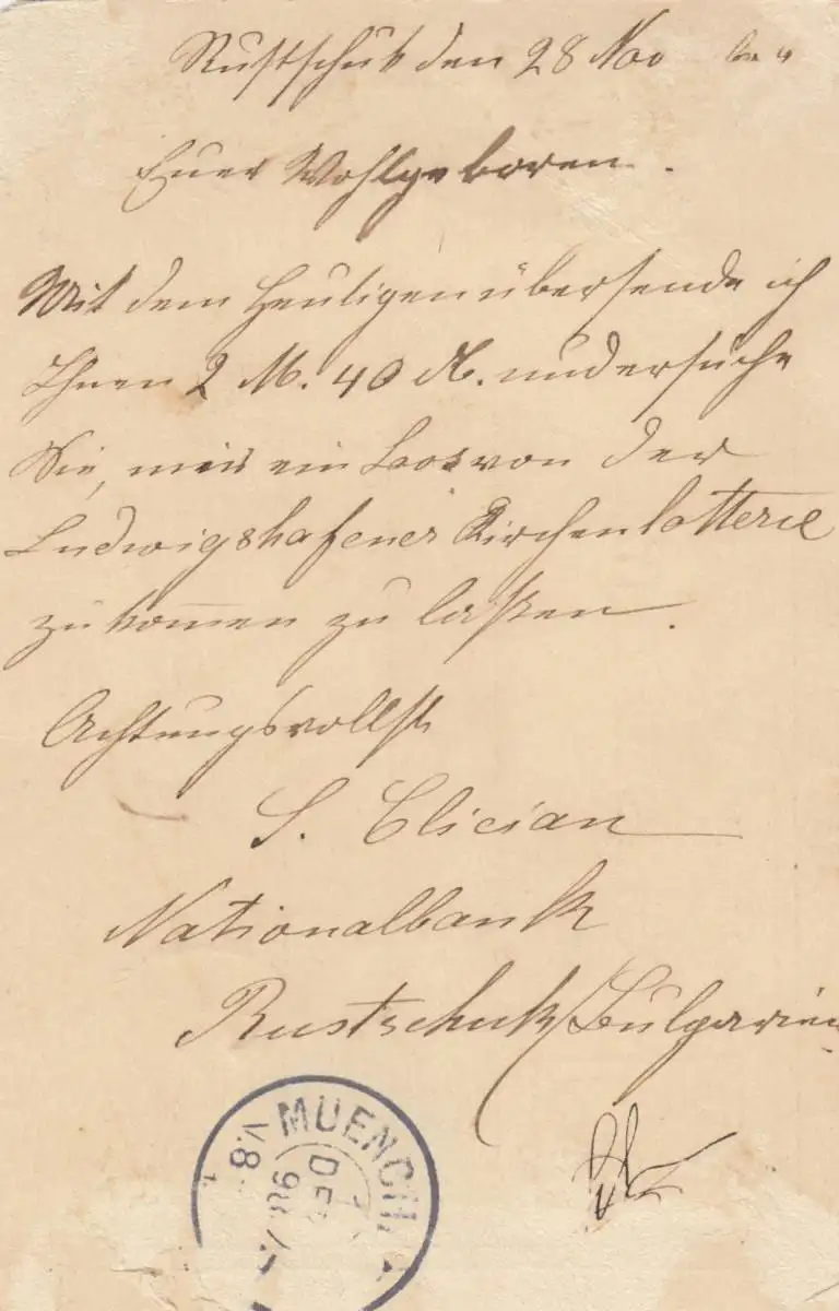 Teilweise wurden vom Scanner ca. 2mm vom Bildrand abgeschnitten. Der Beleg und Briefmarke (n) sind vollständig erhalten.