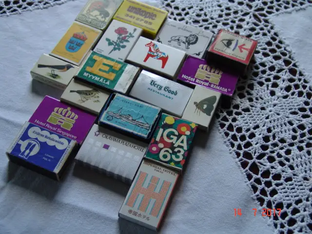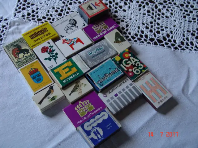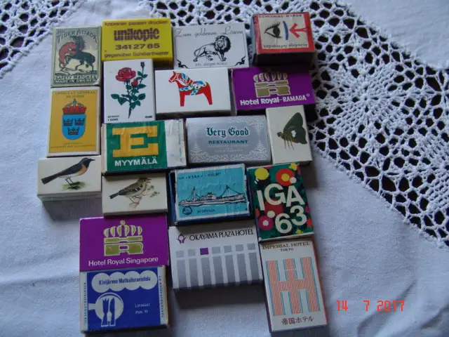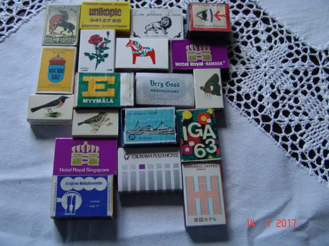 Angeboten werden 19 Streichholzschachteln seit den 60er Jahren aus Industrie, Handel, Gastronomie und Hotelerie, National und International.