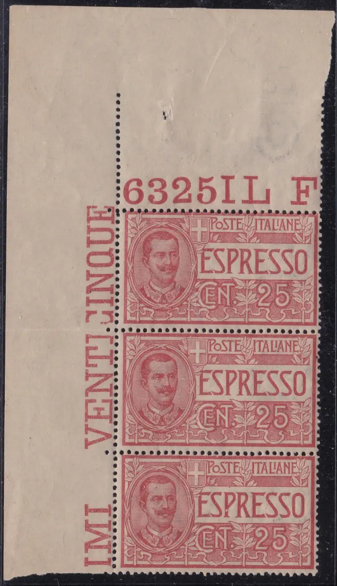 1903 KÖNIGREICH ITALIEN, Espresso Nr. 1 DREISTREIFEN MIT TISCHNUMMER POSTFRISCH / **