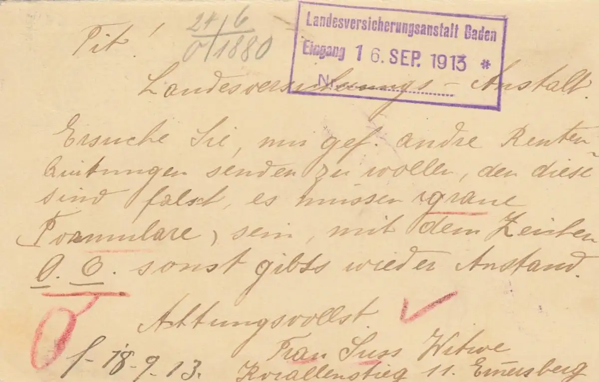 Teilweise wurden vom Scanner ca. 2mm vom Bildrand abgeschnitten. Der Beleg und Briefmarke (n) sind vollständig erhalten.