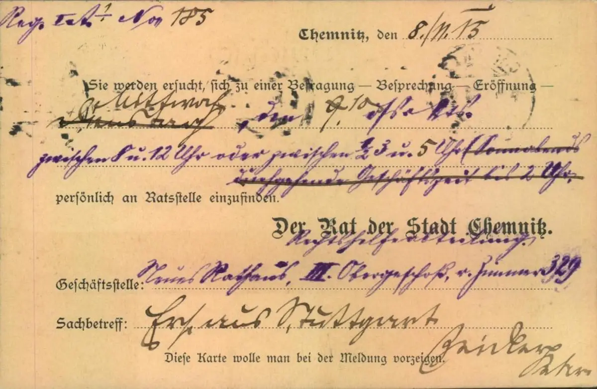 1915, 3 Pfg. Germania Privatganzsachenkarte ab CHEMNITZ