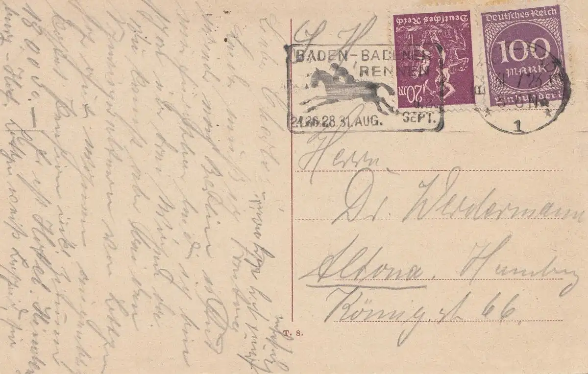 1923: Ansichtskarte Baden-Baden: Pferderennen