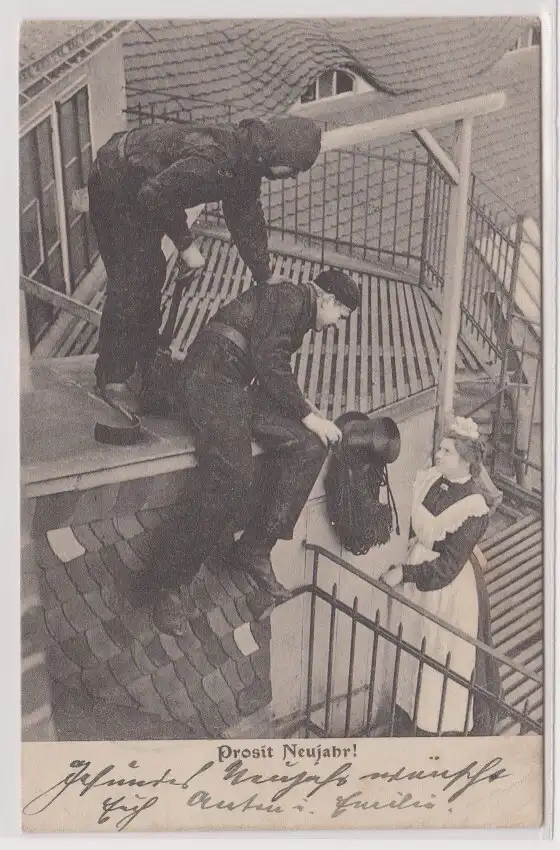 19232 AK Prosit Neujahr - 2 Schornsteinfeger auf dem Dach 1905