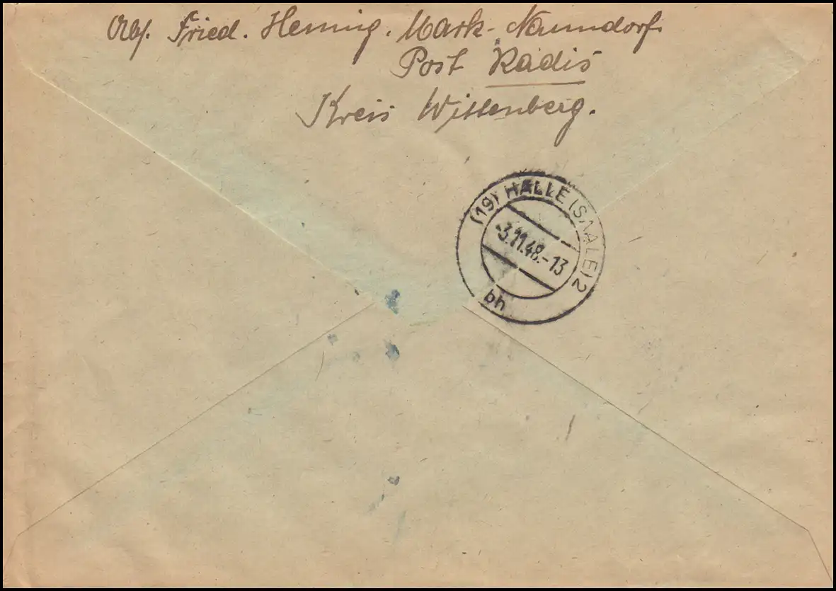 portogerechte Mischfrankatur auf Fernbrief per Einschreiben mit Not-Einschreibe-Zettel von GRAFENHAINICHEN (KR. BITTEFELD) b 2.11.49 an die Landesregierung Sachsen-Anhalt, Ankunftsstempel HALLE (SAALE) 2 - 3.11.48