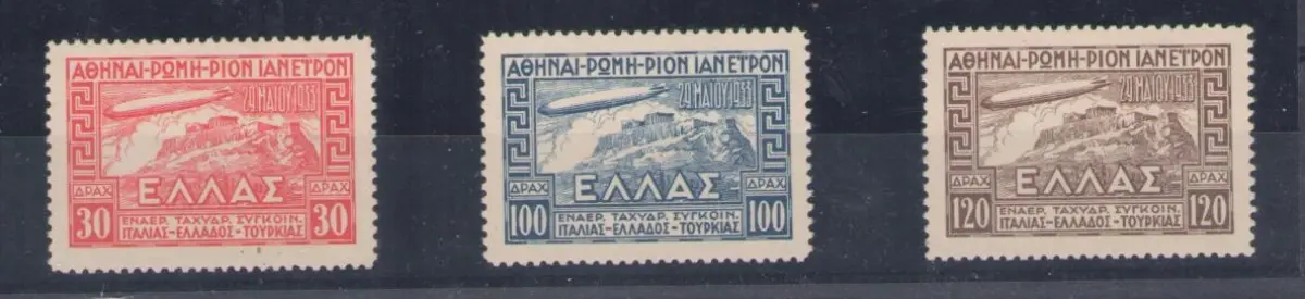 1933 Griechenland - Griechenland, Luftpost - Graf Zeppelin Rom - Rio de Janeiro - Yvert Nr. 5/7 - MNH ** Zertifikat Blond