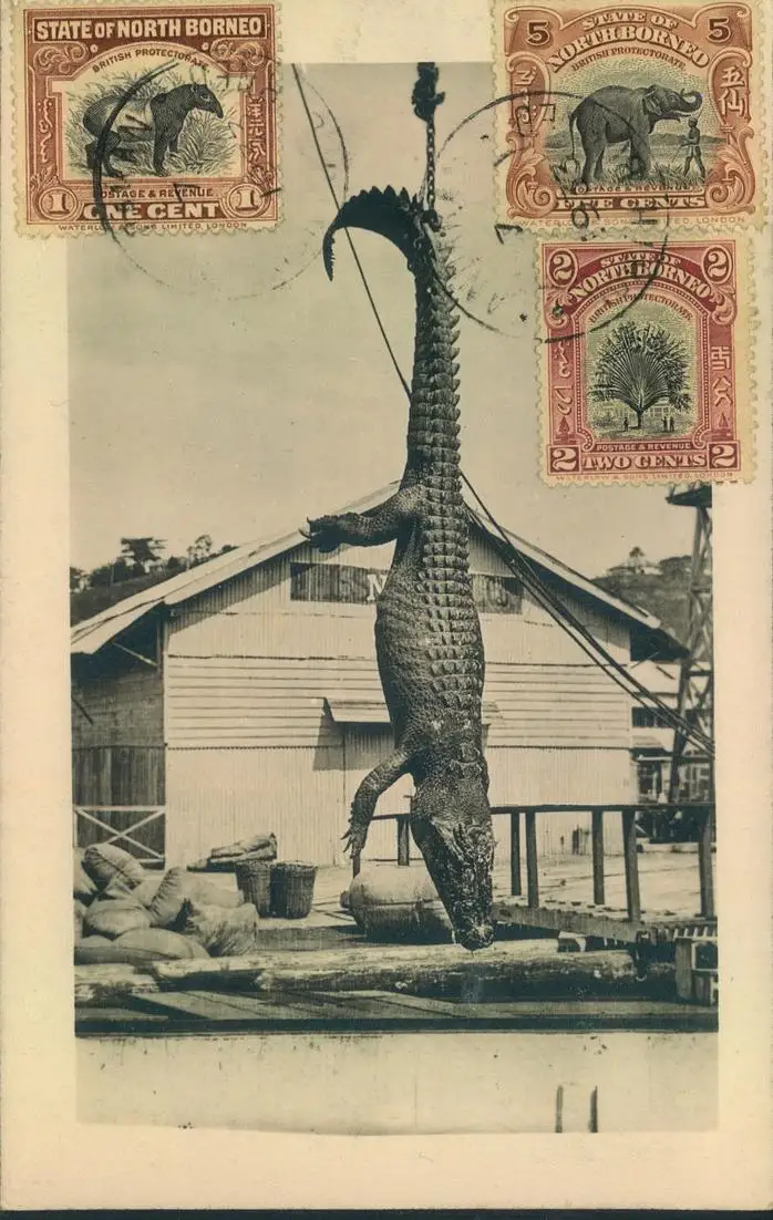 1933, frankierte Bildkarte Krokodil, bitte ansehen