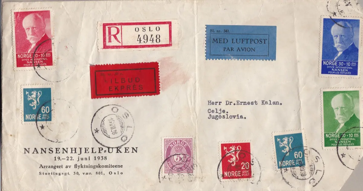 1938 NORWEGEN - Einschreiben von Oslo nach Celje auf dem Luftweg - Interessantes A/Briefe