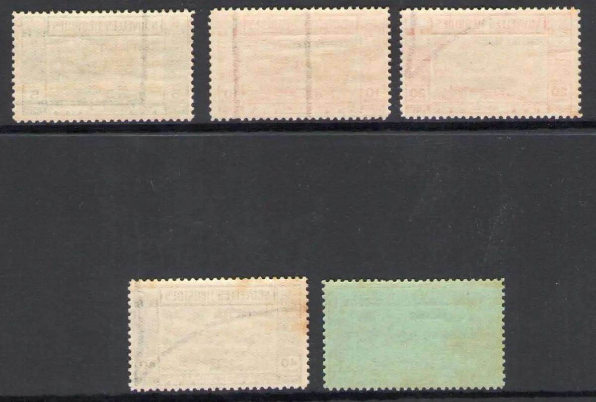 1938 Nouvelles Hebrides - Stanley Gibbons Nr. fd65/fd69 - MNH ** Französische Inschrift - Vergilbung auf der Rückseite wie im Scan Stanley Gibbons 150 - Auslandskarton Kolonien - Der von mir vorgeschlagene Preis berücksichtigt die Qualität der Serie sehr schön und intakt jedoch mit einigen leichten Vergilbungen