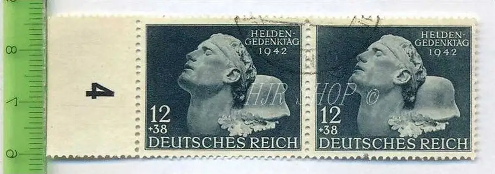 1942, 10. März. Heldengedenktag, 812 Gest. bes. Doppelmarke mit linkem Seitenrand
