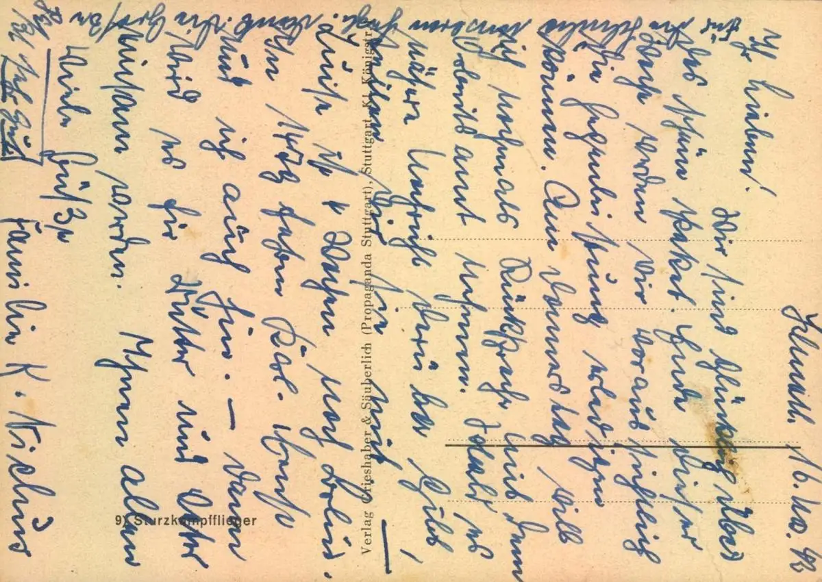 1942, PROPAGANDAKARTE, Doppeldecker im Sturzflug. ausführlicher Text, im Umschlag befördert