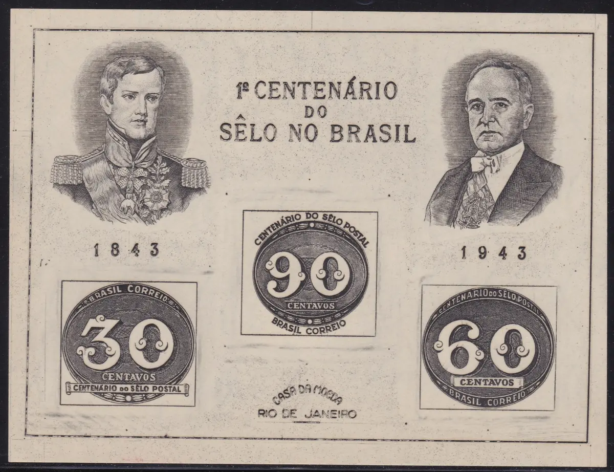 1943 BRASILIEN Yvert BF Nr. 6 (*) OHNE GUMMI Hundertjahrfeier der Briefmarke Yvert Tellier Euro 30 Lot 89