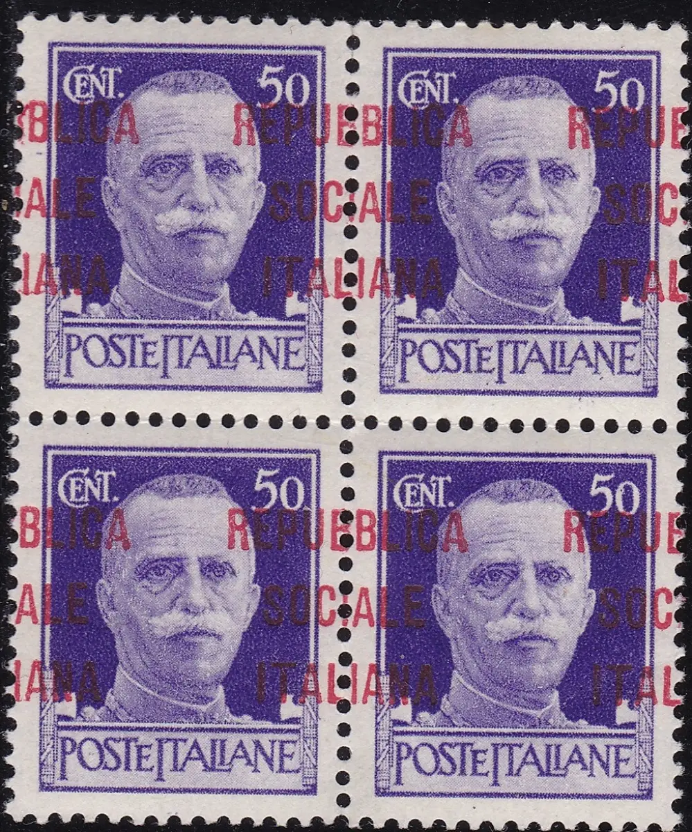 1944 ITALIENISCHE SOZIALE REPUBLIK, Nr. 493pm 50c. violett MNH/** QUARTINA