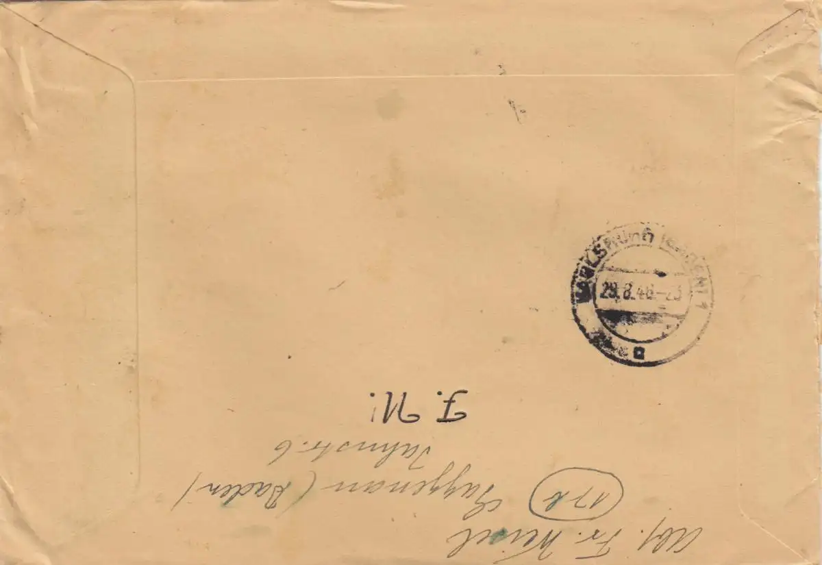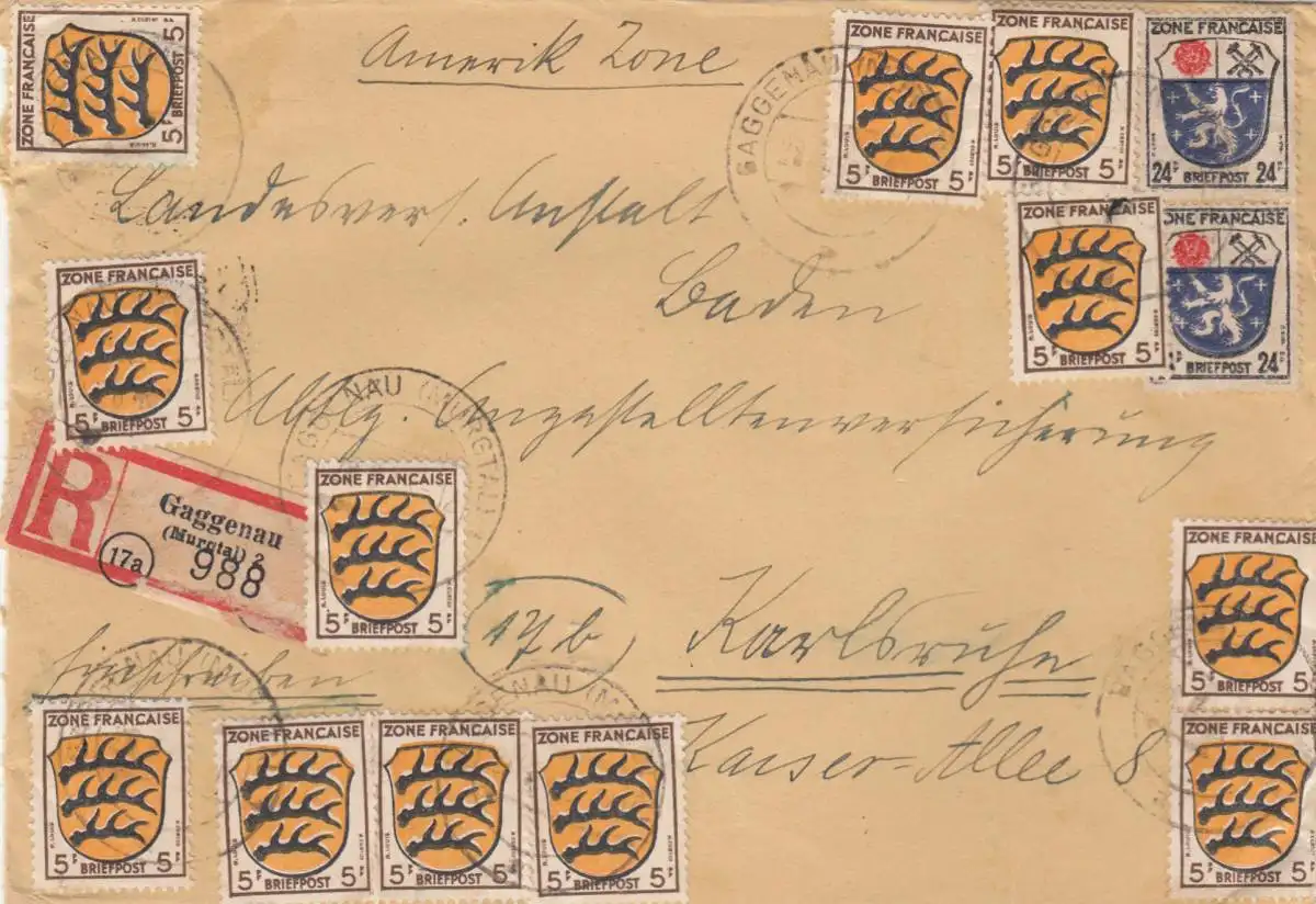 1946: Einschreiben Gaggenau nach Karlsruhe
