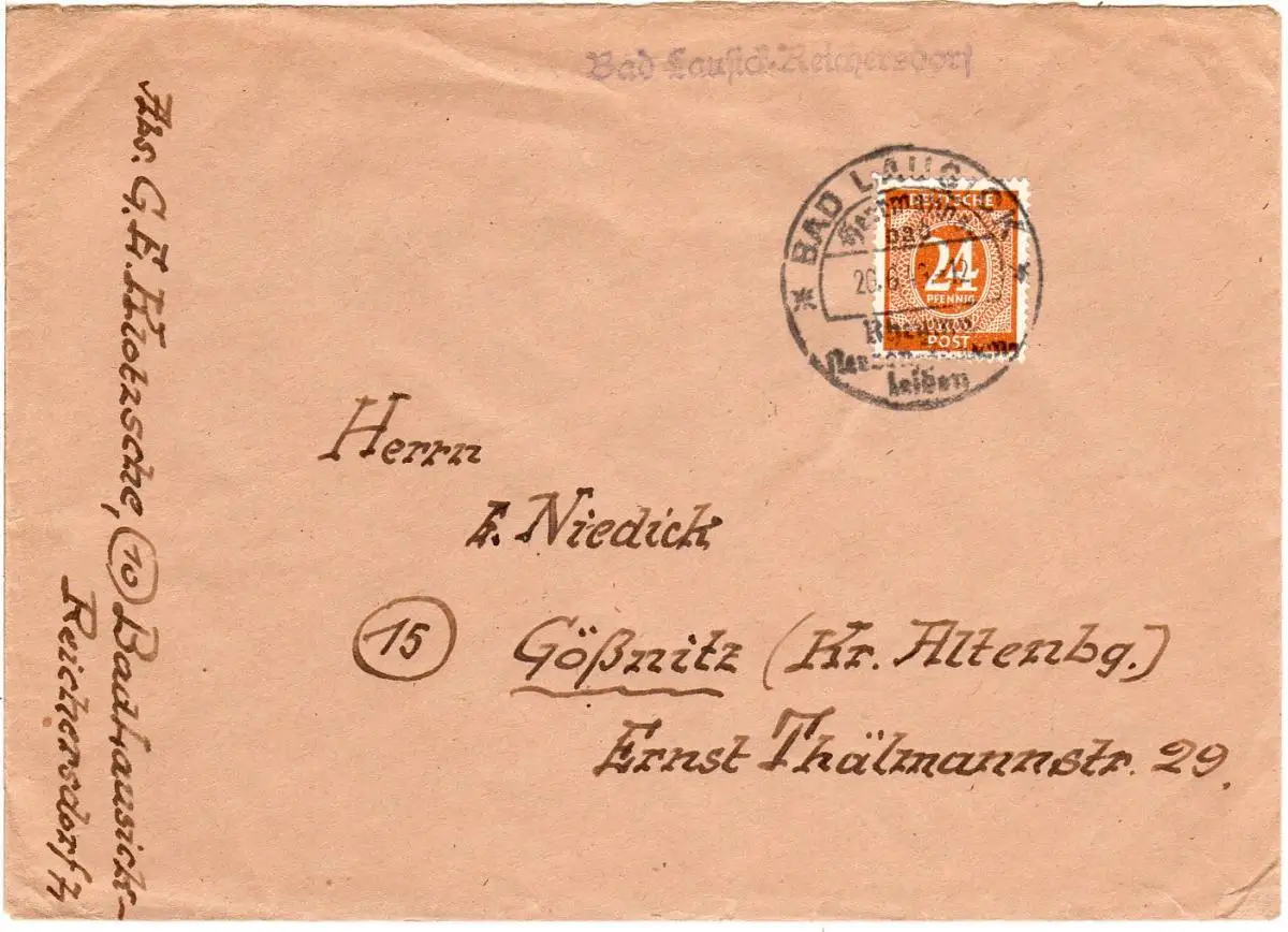 1946, Landpoststempel BAD LAUSICK-REICHERSDORF auf Brief m. 24 Pf.