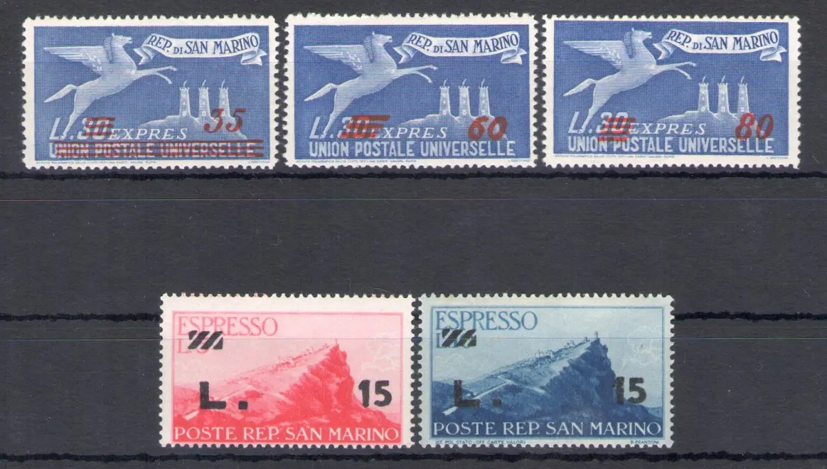 1947-48 San Marino - Espress - Nr. 16-20 - 5 Werte - postfrisch ** Sächsischer Katalog Euro 140 - Ladenbestand - rote Box rsm