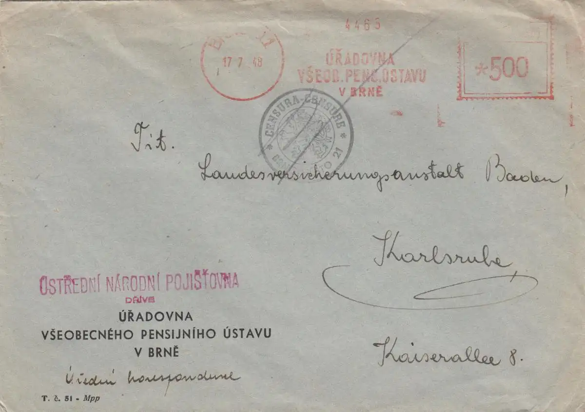 1948: Meter cancel Brné to Karlsruhe