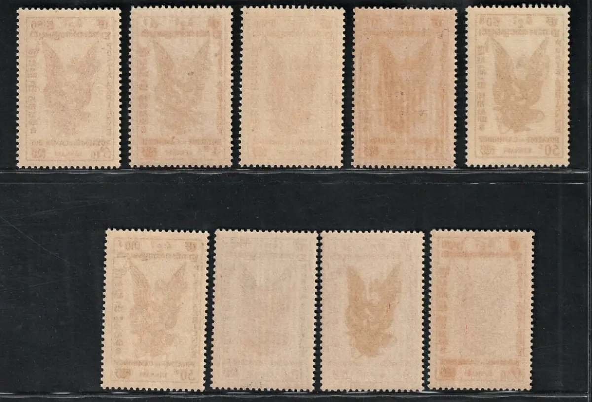 1953 KAMBODSCHA, Gottheiten Kinnari, Yvert Luftpost # 1/9, MNH ** Yvert Katalog 2019 Euro 66 - Lot Laos rotes Album Buchhandlung mit arabischen Ländern