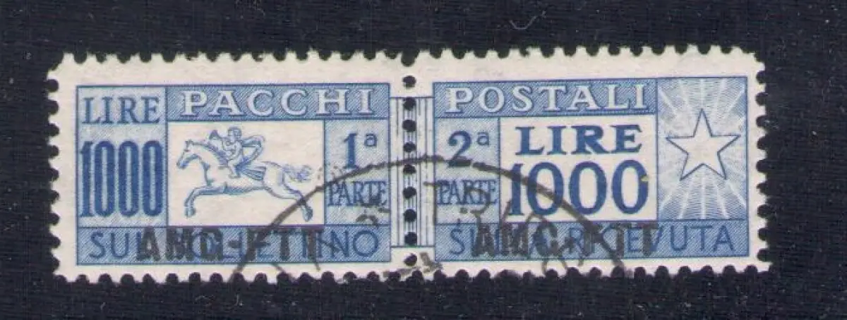 1954 TRIEST A - Postpaket Nr. 26/I - Lineare Verzahnung 13 1/4 - Gebraucht Lire 1.000 Übersee - Signiert Enzo Diena gebraucht Sachsen P.P. Nr. 26 Euro 1600 - Lot M