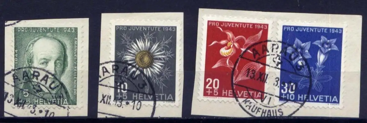 (1956) Schweiz Nr.424/7 O gestempelt Briefstücke