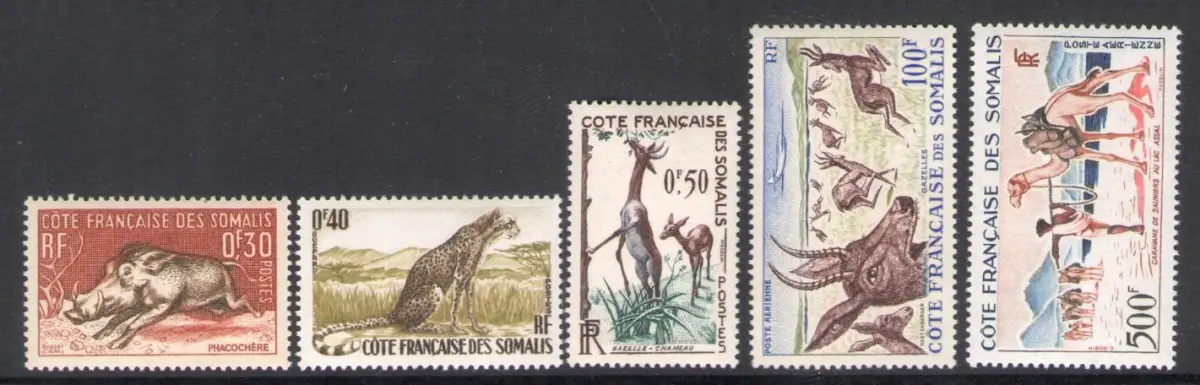 1958-59 COTE DES SOMALIS - Yvert n. 287/289 + PA 26 und 29 - MNH ** Themenbox 2