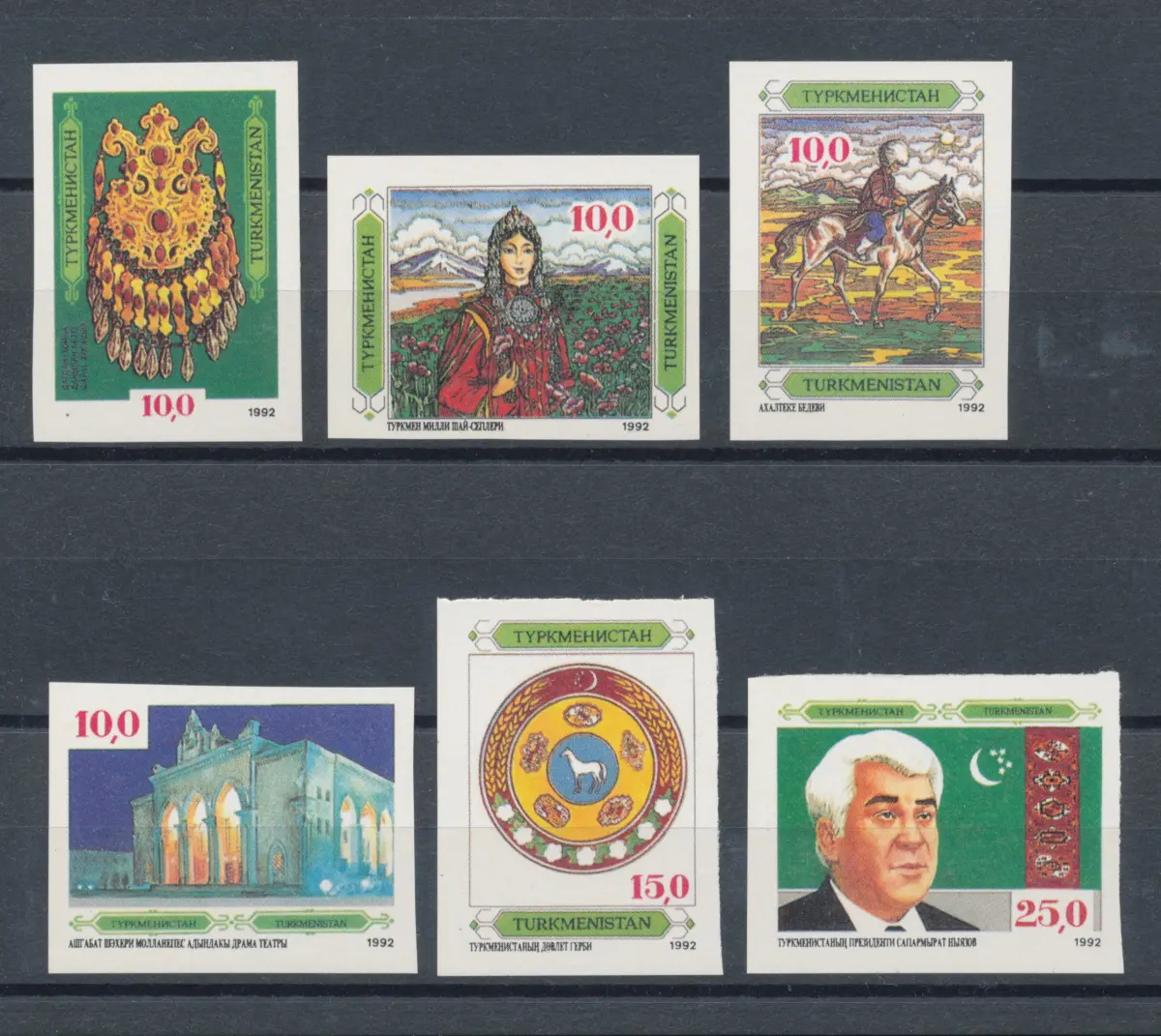 1992 Turkmenistan, n. 4/9 - Nationale Kultur - 6 Werte ungezähnt - postfrisch **