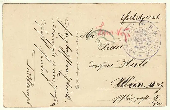 Bemerkungen: Gelaufen m. Stempel: S.M. Hulk / Adler / Vulkan. Zweikreisst. violett - KALIS2-P.50 neben Tst. Sibenik Datum fehlt.