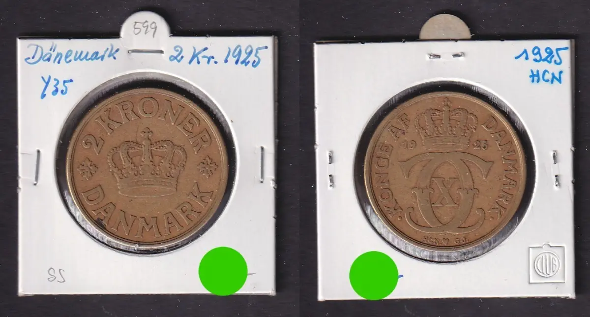 2 Kronen Messing Münze Dänemark 1925 ss (172256)