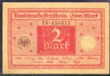2 Mark Darlehnskassenschein Deutsches Reich 1920