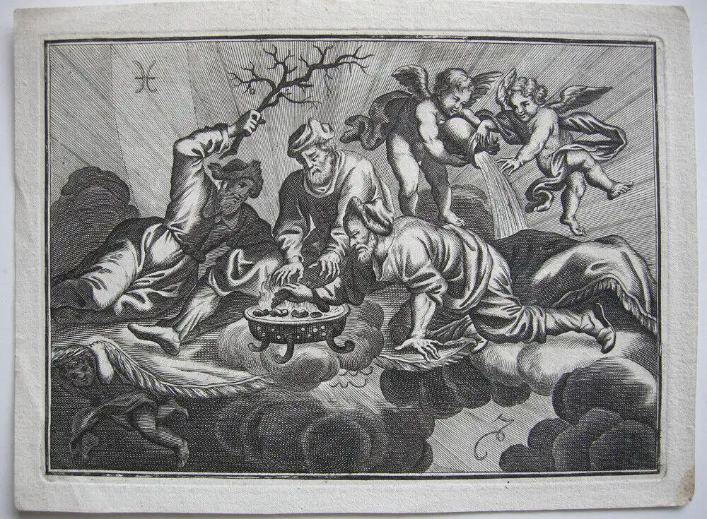 2 Monatskupfer Über den Wolken Herbst und Winter Orig. Kupferstiche um 1780