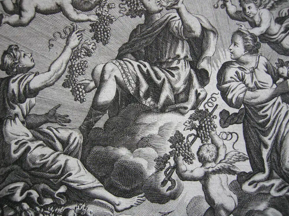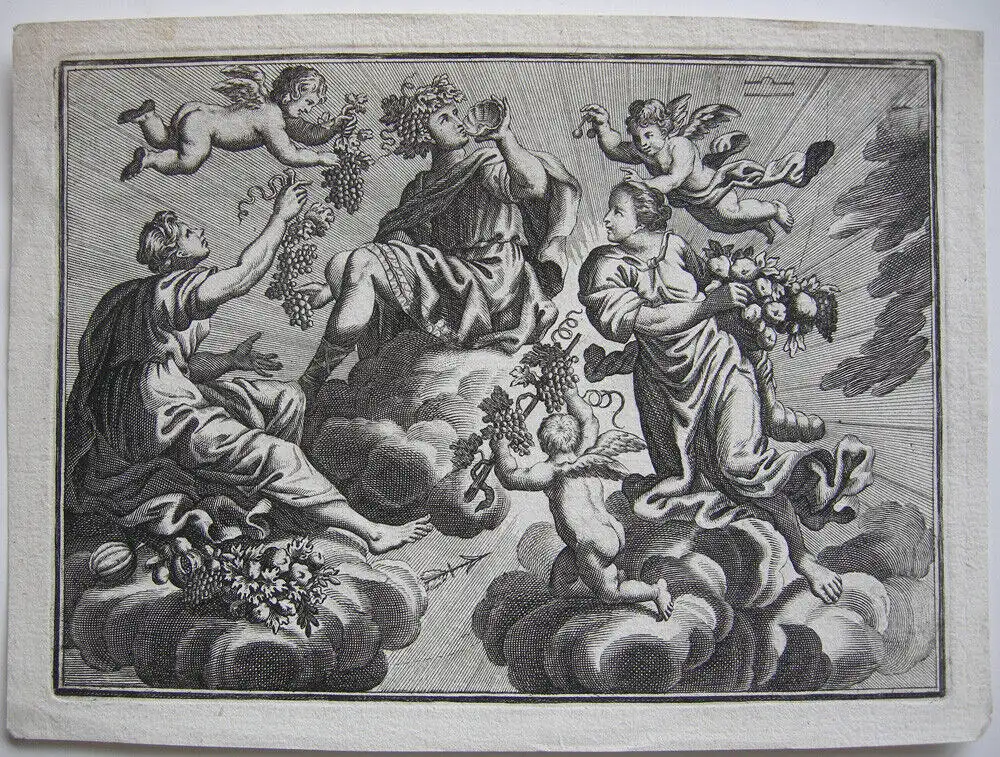 Figuren und Putti über den Wolken mit den jeweiligen jahreszeitlichen Attributen