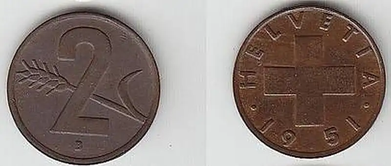 2 Rappen Kupfer Münze Schweiz 1951