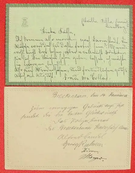 Artikelbeschreibung und Zustand : Siehe Scan. Weitere Infos : 2 huebsche Postkarten mit Praegedruck-Zierrahmen