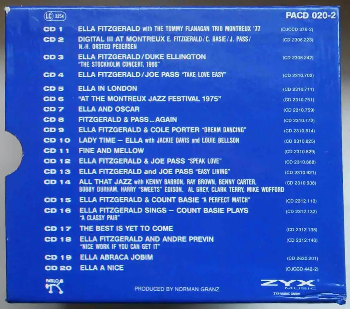 Rare 20 CD Box, Zyx RecordsElla Fitzgerald auf Pablo Records, Complete Recordings - feat Count Basie, Tommy Flangan, Duke Ellington, Joe Pass, André Previn, Oscar Peterson usw... - Livekonzerte Montreux, London...
