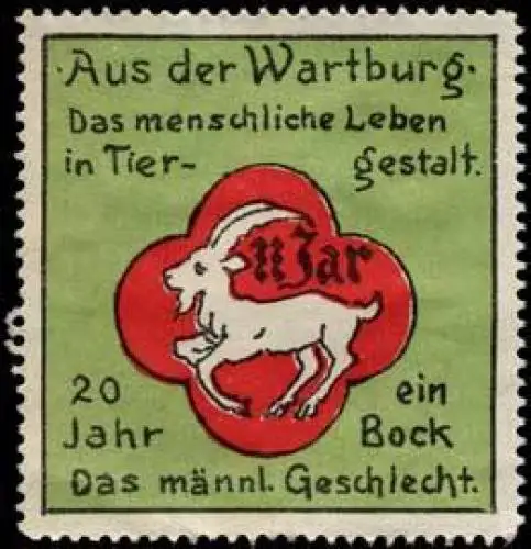 Aus der Wartburg. Das menschliche Leben in Tiergestalt. Das männliche Geschlecht., Größe/Zustand: 5x5 , guter Zustand, Original alte Reklamemarke die seinerzeit für die Werbung benutzt wurde