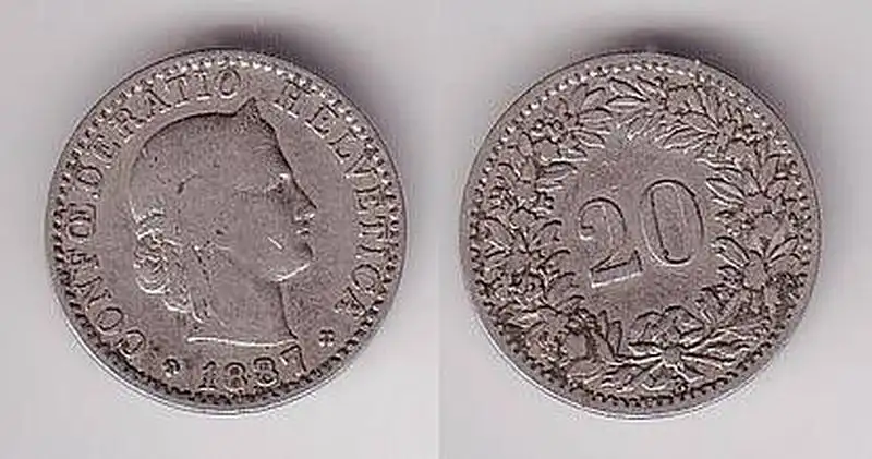 20 Rappen Nickel Münze Schweiz 1887 ss
