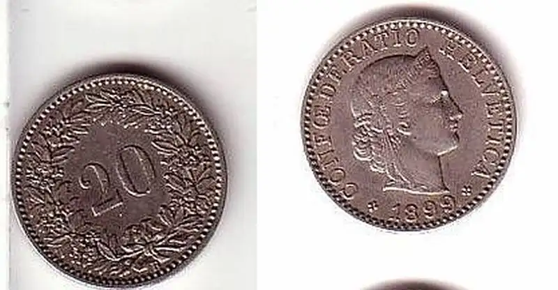 20 Rappen Nickel Münze Schweiz 1899 ss+