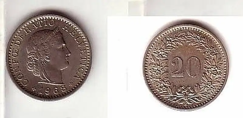20 Rappen Nickel Münze Schweiz 1968 ss+