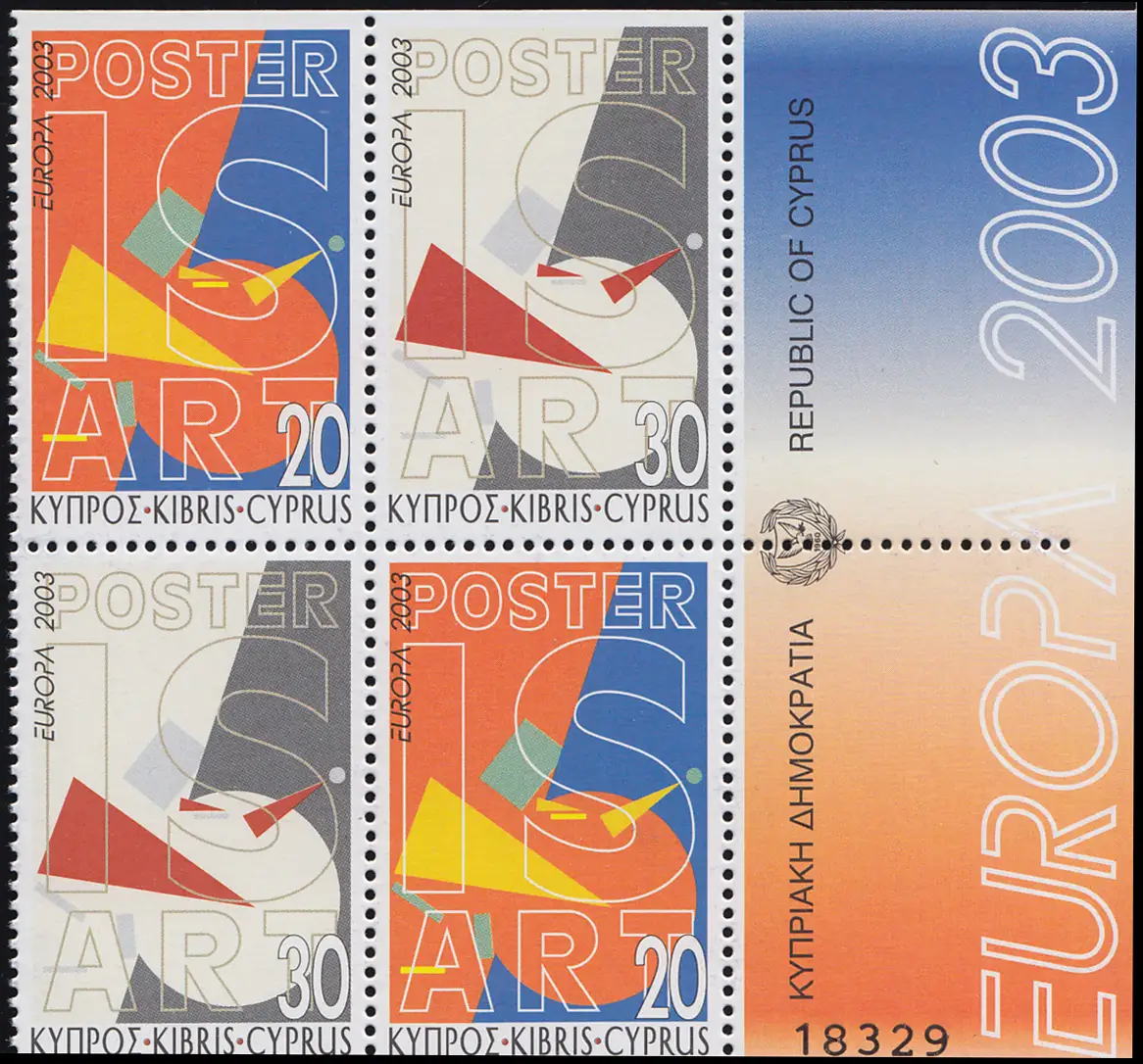 2003 Zypern 1013D-1014D Plakatkunst, Heftchenblatt **