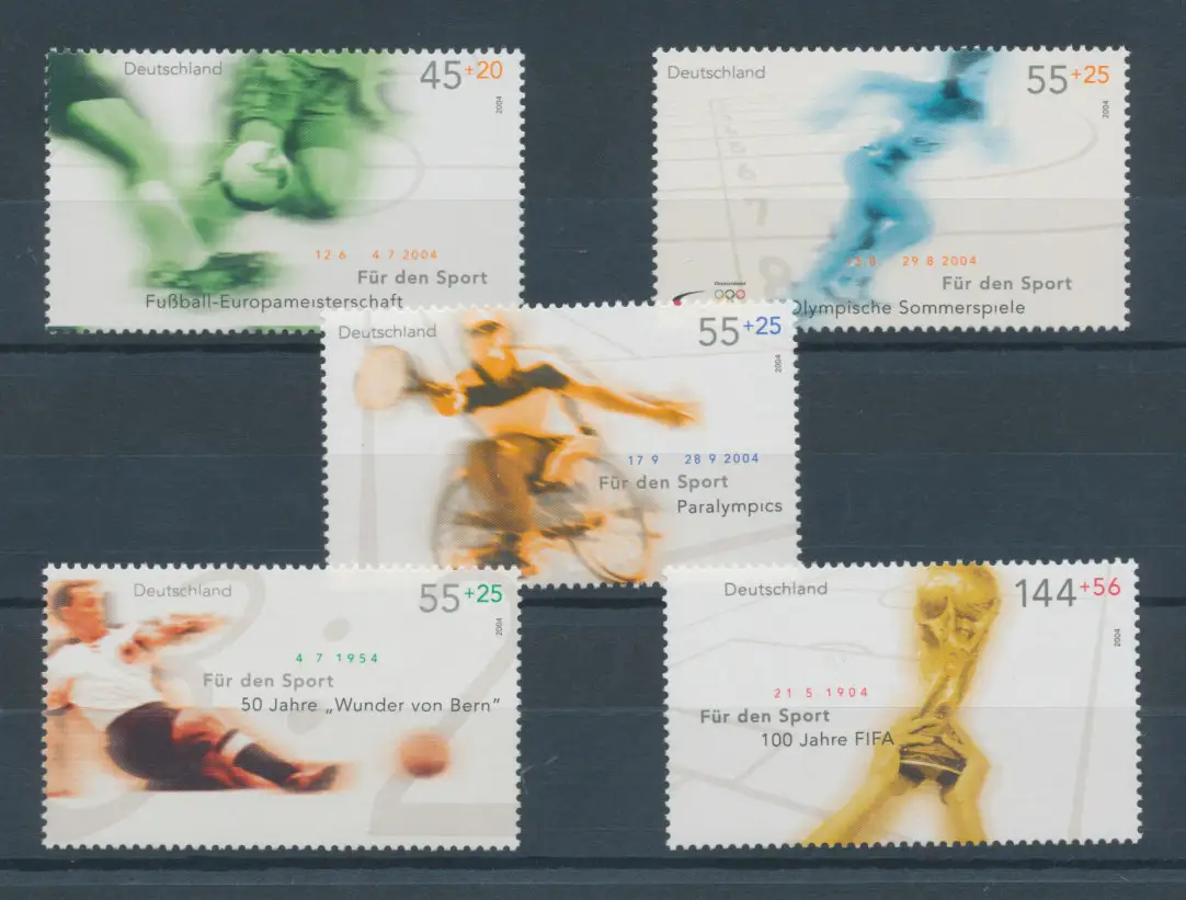 2004 Sporthilfe: Fußball-EM, Olympia Athen, Wunder von Bern, FIFA. Satz kpl. **
